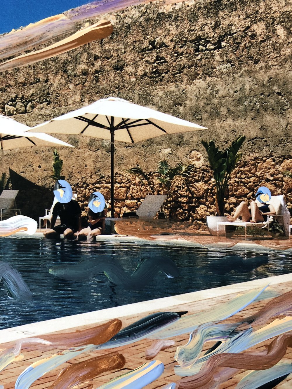 One of a kind, original mixed media art work featuring acrylic over 35mm film photography printed on archival paper.