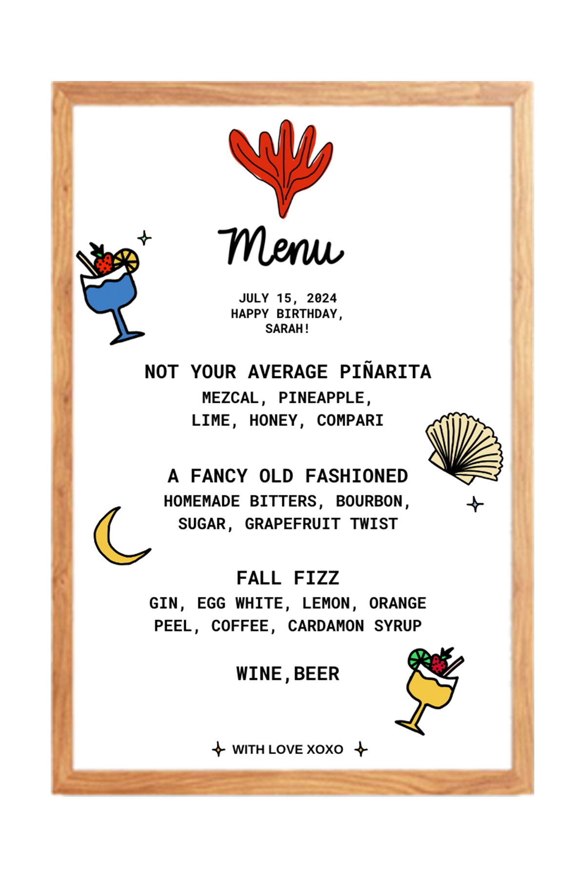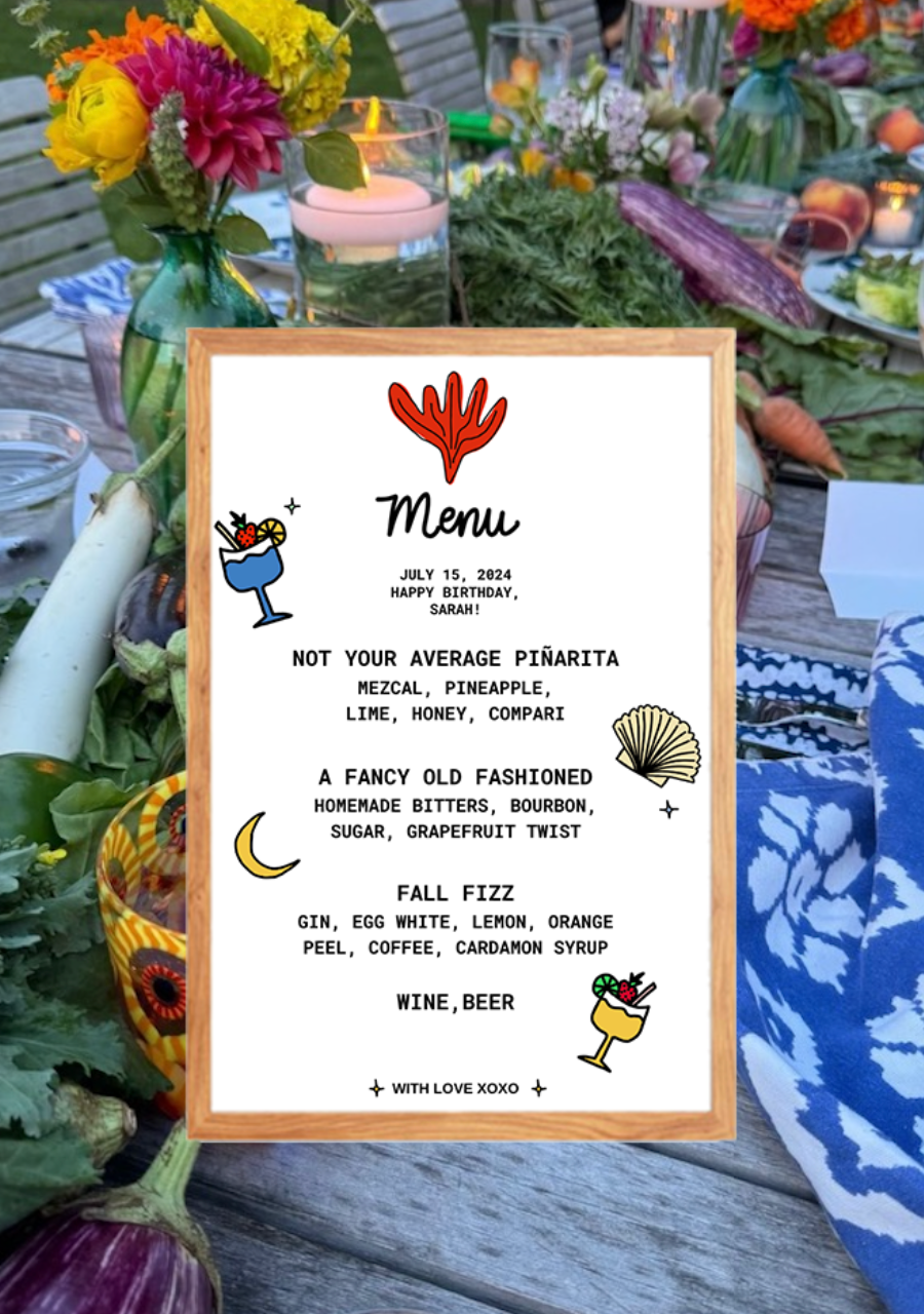 - 5in x 7in menu - see printing instructions below or use as a digital invite